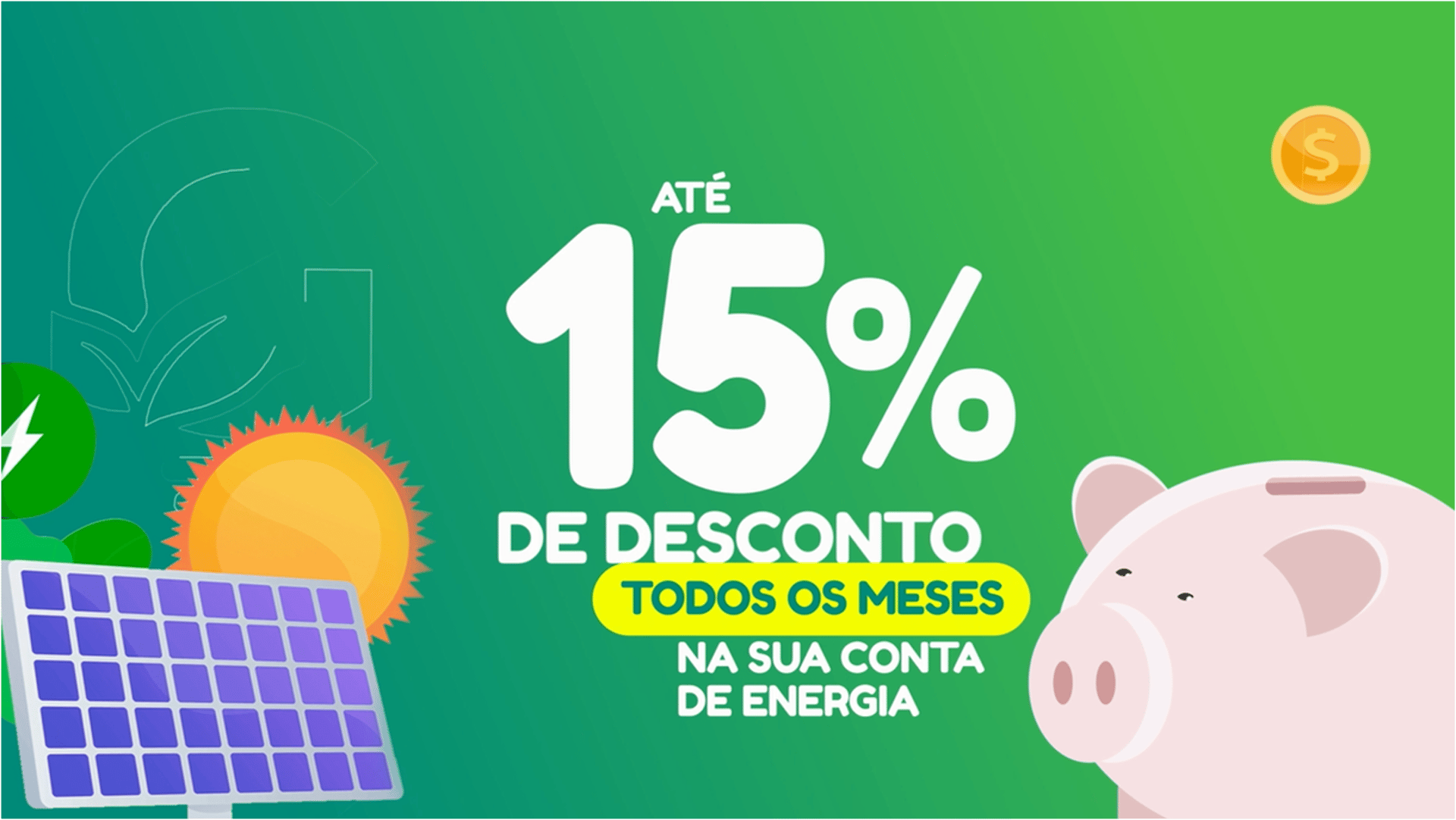 Garanta desconto de até 15% para sua casa, apartamento ou pequenos e médios negócios com valor atual mínimo de conta de luz de R$ 150,00. Sua adesão é sem custos, 100% digital e a energia continuará sendo fornecida pela distribuidora local só que mais barata!