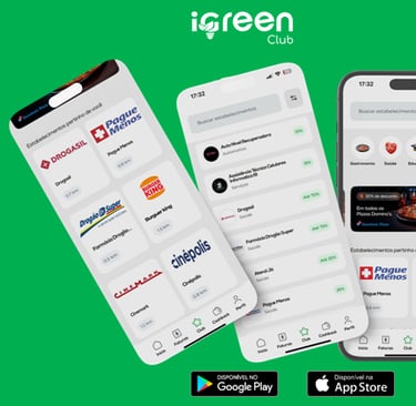 Ao cadastrar sua conta de luz, além do desconto na energia, você também ganha acesso ao iGreen Club, um App direto em seu celular para obter descontos em mais de 30 mil estabelecimentos em todo o Brasil.